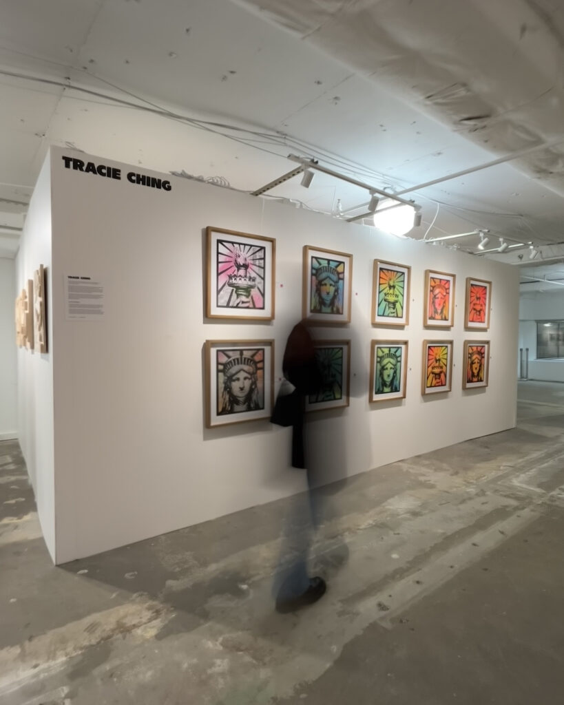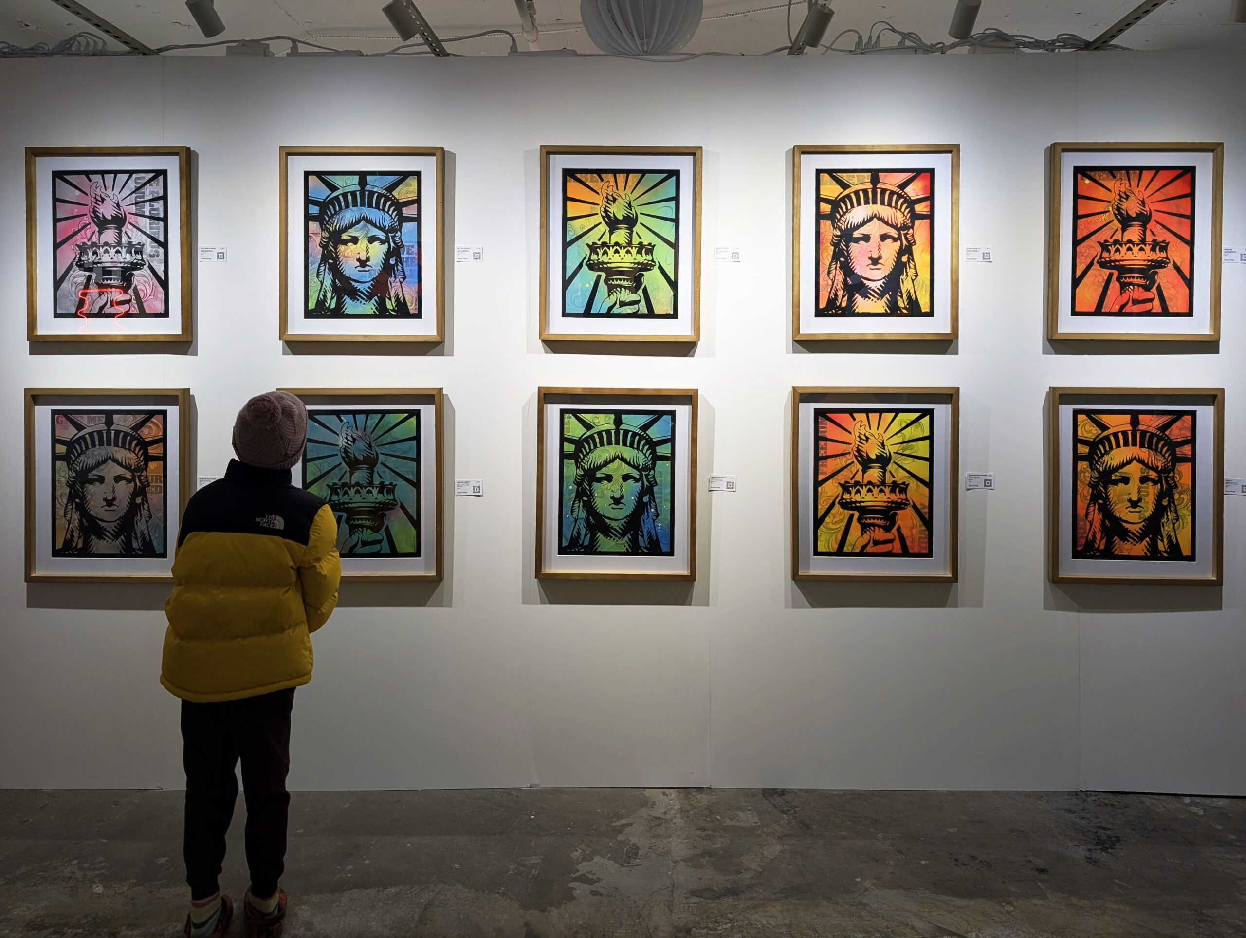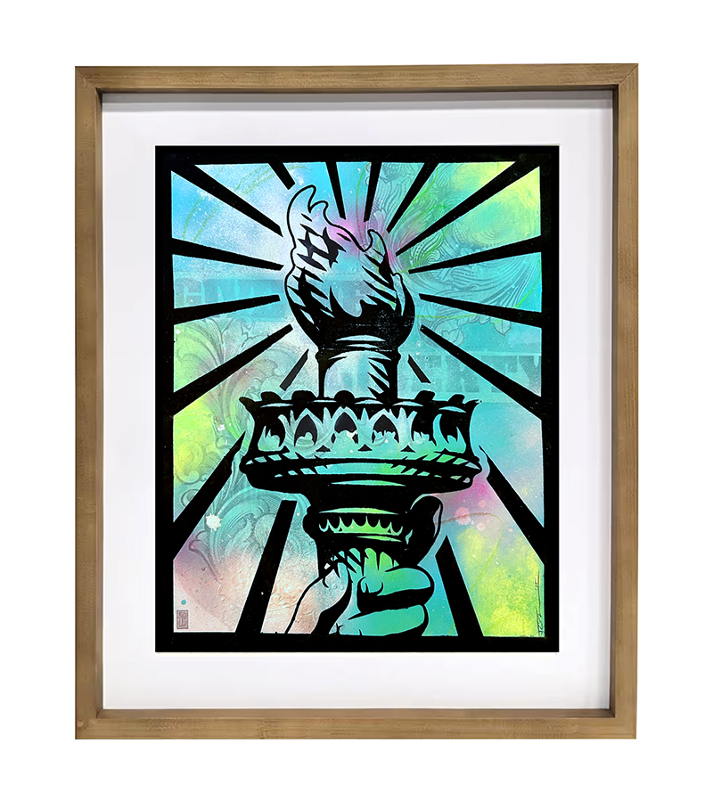 “A continuing meditation on Americana, this series explores the multifaceted nature of American society and iconography. Beneath the familiar, unified imagery lies complex multitudes—a mixing, blending, and coming together of disparate parts. The final product is something colorful, messy and beautifully imperfect.